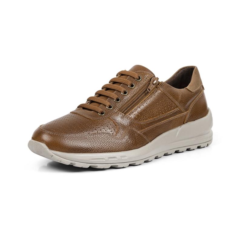 Calçado versátil e confortável, ideal para o seu dia-a-dia. Sapato confeccionado em couro com curtimento especial, oferecendo um calçado macio e suave. Incluindo também parte em tecido em local estratégico para maior conforto. A forração interna também é em couro garantindo melhor absorção do suor, evitando odores.