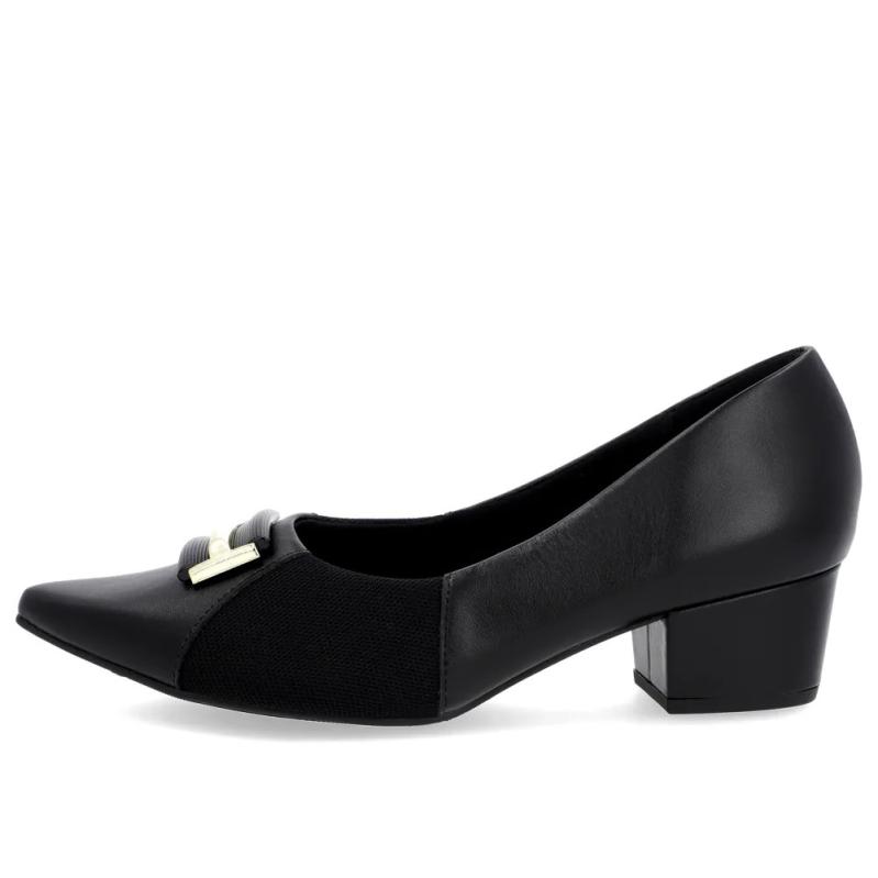 Scarpin cabedal em couro vegetal na cor preto. O modelo possui tecnologia Joanetes, que alivia o desconforto da região, garantindo s uavidade na pisada por usufruir de materiais moldáveis nos pés.