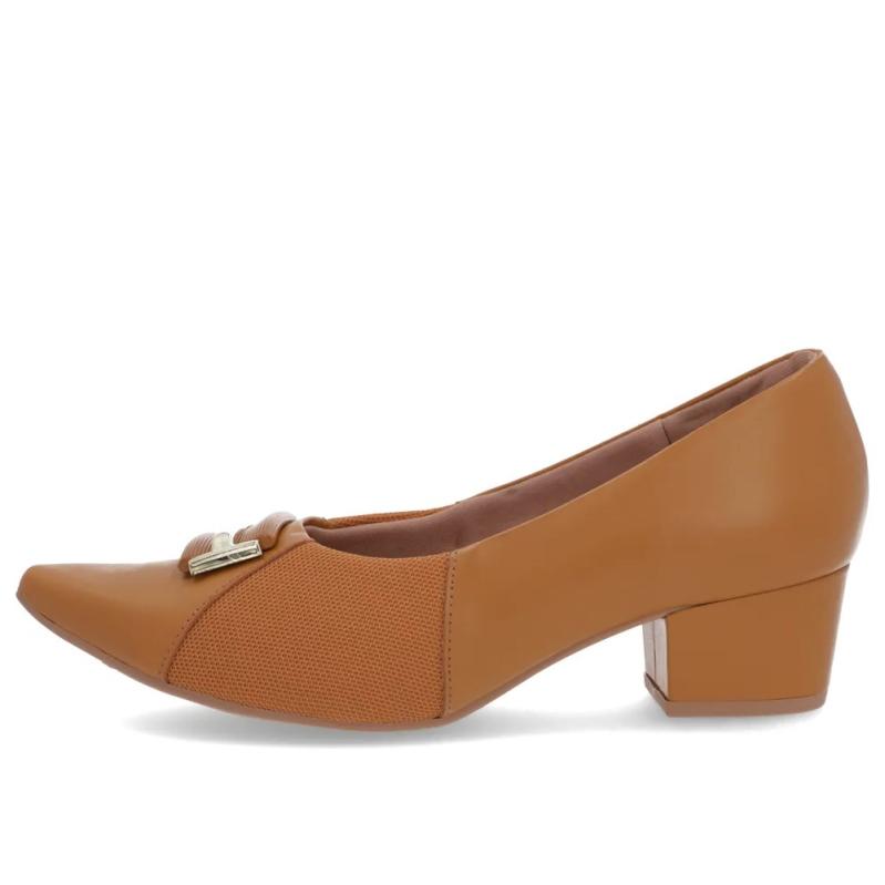 Scarpin cabedal em couro vegetal na cor tan. O modelo possui tecnologia Joanetes, que alivia o desconforto da região, garantindo suavidade na pisada por usufruir de materiais moldáveis nos pés.