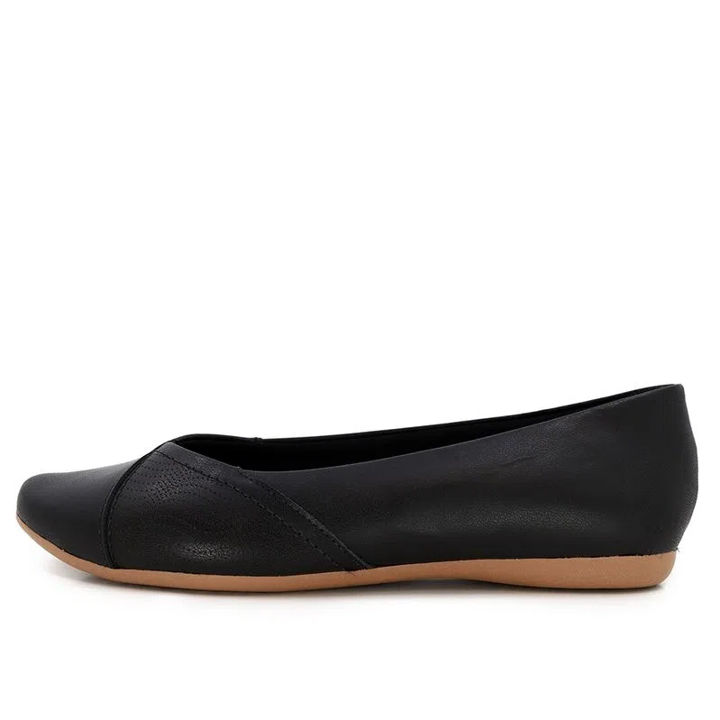 Sapatilha rasteira, cabedal em couro napa valise preto com detalhes em laser. O modelo possui tecnologia +Bem-Estar, com espumas posicionadas em pontos estratégicos na palmilha garantindo conforto e suavidade na pisada.