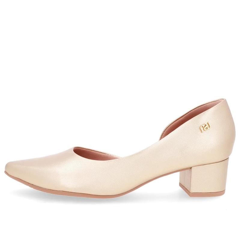 Scarpin cabedal em couro soft slim na cor ouro light. O modelo possui tecnologia +Bem-Estar, com espumas posicionadas em pontos estratégicos na palmilha garantindo conforto e suavidade na pisada.